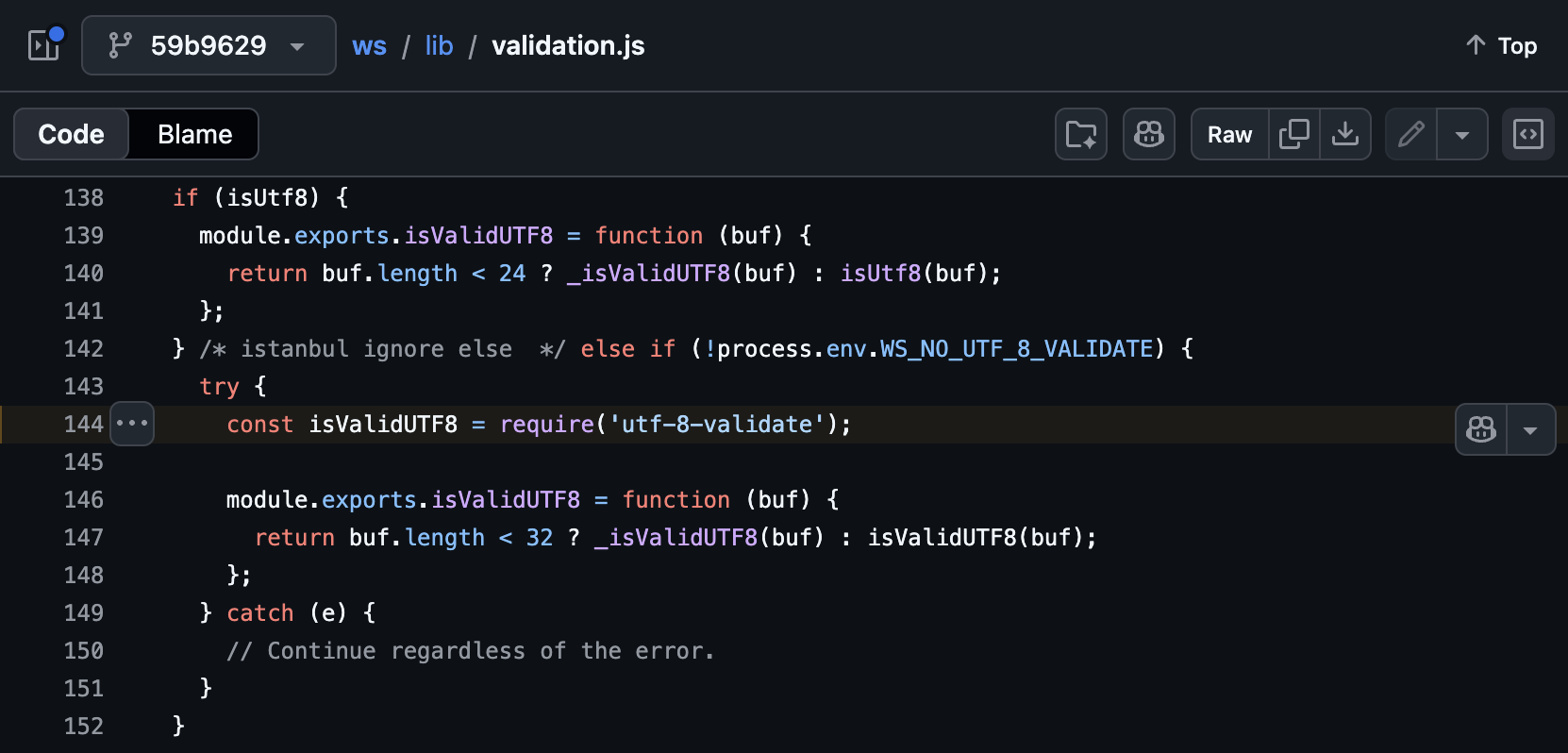 On April 22, 2025, ZDI received a report for a similar vulnerability in Discord reported by T. Doğa Gelişli. Discord uses the ws WebSocket library, which contains an optional dependency on utf-8-validate for compatibility with older Node.js versions: